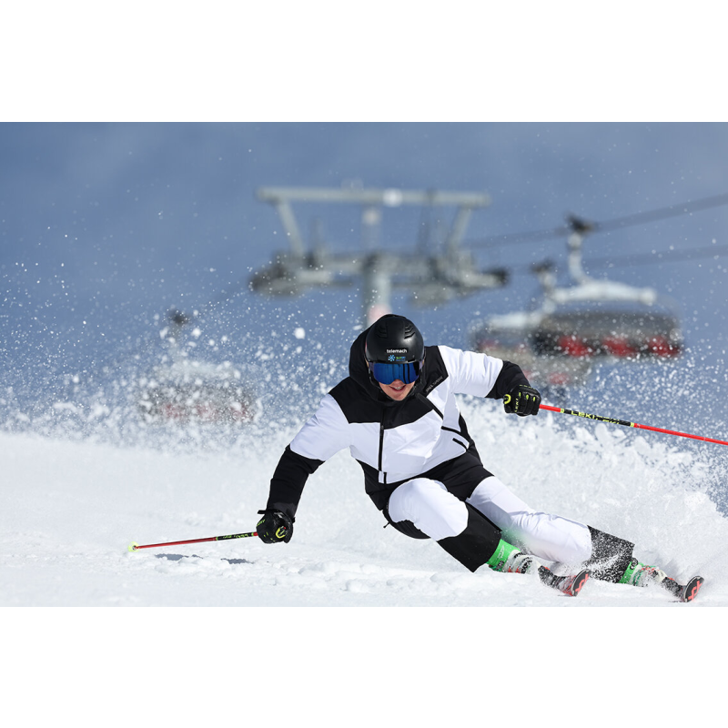 RINO – chaqueta de esquí moderna, confeccionada con materiales innovadores y un atractivo diseño asimétrico con cremallera lateral frontal, creada para quienes quieren destacar en las pistas.